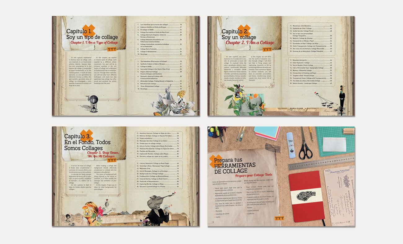 Editorial Design for 30 Collage Exercises: A Step-by-Step Bilingual Book