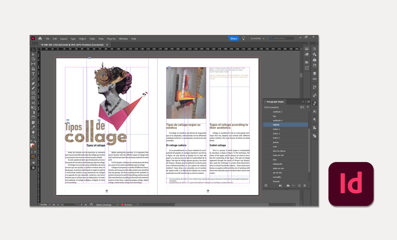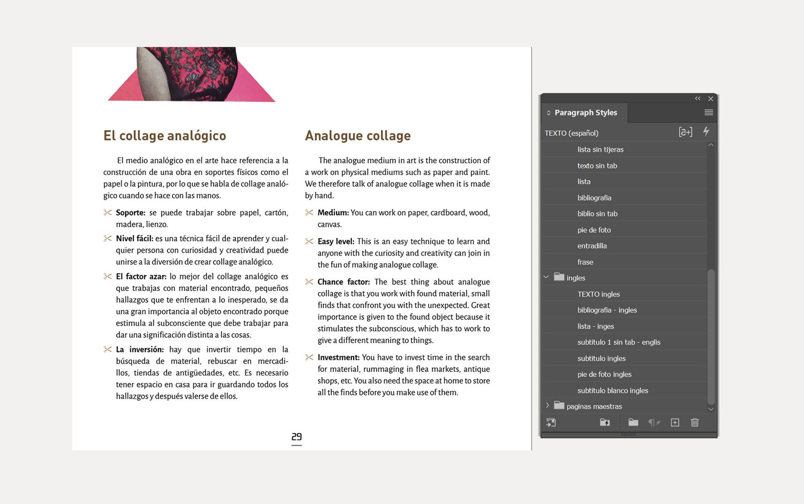 To ensure consistency across the publication, the entire book was built using paragraph, character, and object styles. Separate style settings were developed for English and Spanish in order to preserve correct spelling, hyphenation, and word breaks in both languages.